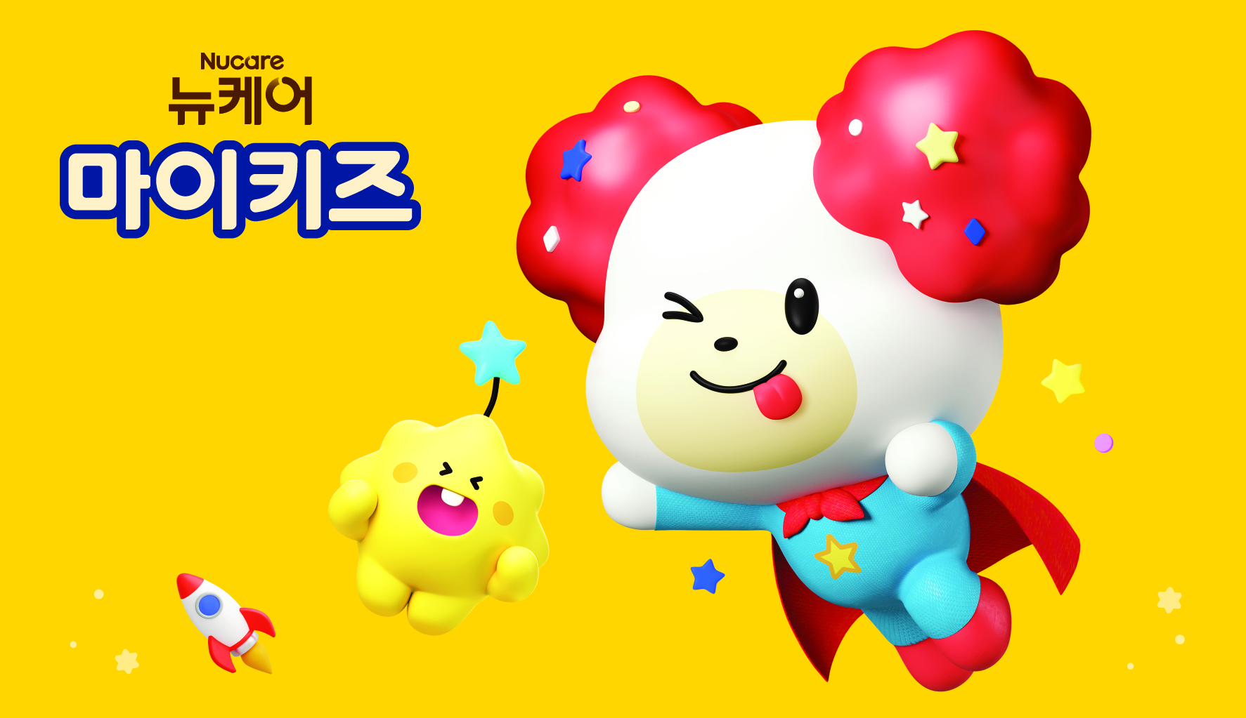 뉴케어 마이키즈는 아이들의 균형 잡힌 성장과 밝은 에너지를 지원하는 브랜드로, 이번에 공개한 마로와 슈는 ‘사랑·웃음·희망’이라는 브랜드 가치를 담아 탄생했다. 꿈과 희망이 가득한 ‘달콤행성’에서 지구로 온 두 캐릭터는 각기 다른 매력을 지녔는데, 따듯하고 포근한 마시멜로 캐릭터 ‘마로’는 희망과 편안함을, 톡톡 튀는 별사탕 캐릭터 ‘슈’는 밝고 즐거운 에너지를 상징한다. 지구에 도착한 ‘마로’와 ‘슈’는 아이들의 고민을 함께 나누고 든든한 비밀 친구가 되어줄 예정이다.