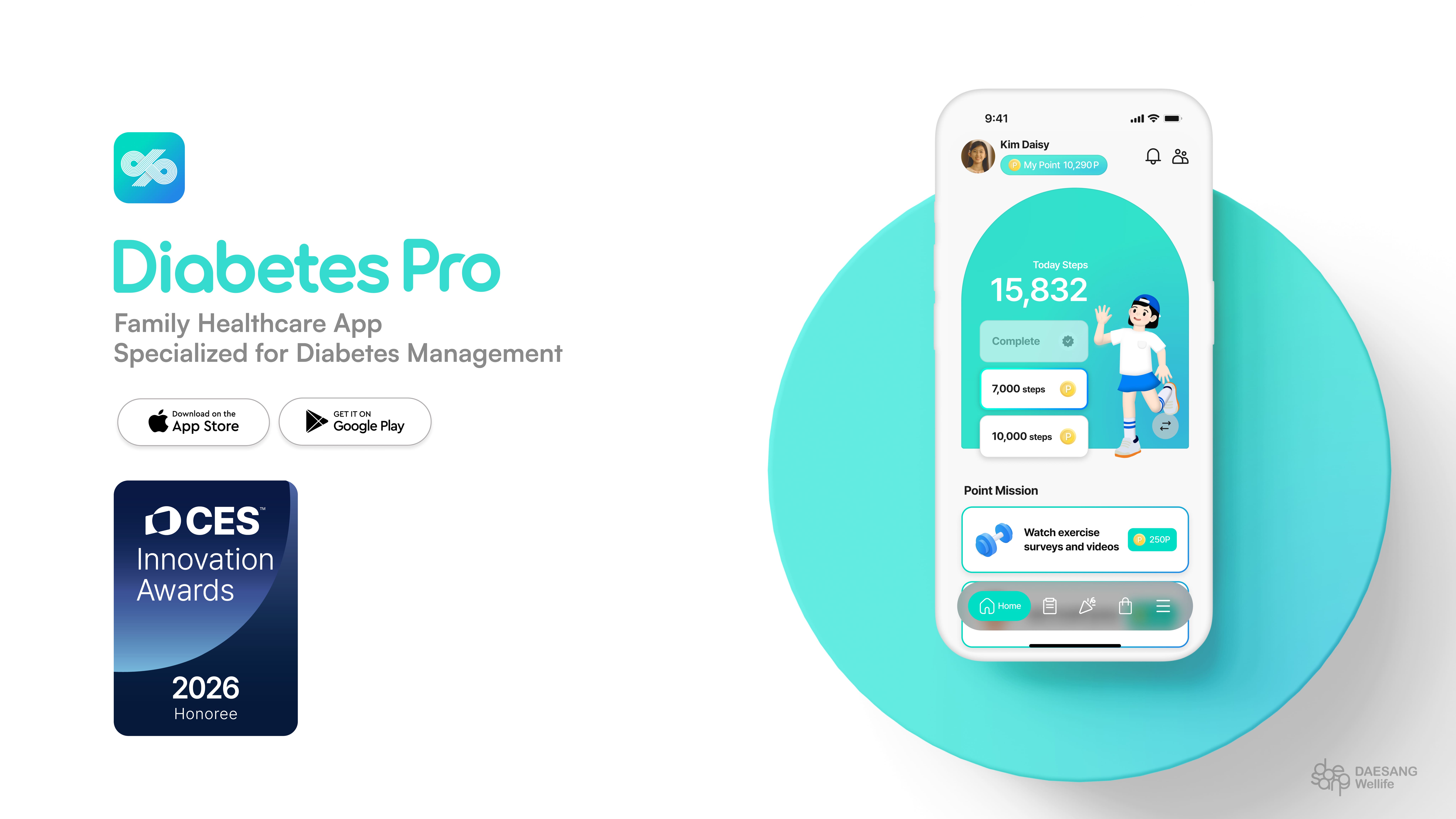 ‘당프로 2.0’은 AI 기반의 초개인화 건강관리 솔루션으로 사용자의 건강 데이터를 분석해 운동 루틴, 식단, 보충제 섭취 및 건강 미션 등을 개인별로 설계해 주는 서비스다. CES 심사단은 ‘당프로 2.0’의 가족 단위 헬스케어 구조와 사용자 경험(UX)의 혁신성을 높게 평가했으며, 혈당 변동성을 예측하고 데이터 기반으로 건강 미션을 제안하는 기능이 혁신상 선정의 주요 요인으로 꼽혔다.